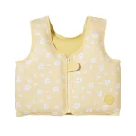 Smart SunnyLife svømmevest i gul med hvide blomster og en 3D-svane med gulkrone på ryggen.