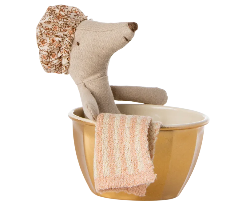 Ligesom alle andre elsker denne mus at tilbringe timer i det varme vand i spaen. Dette sæt indeholder et gyldent badekar, en mus og et håndklæde.