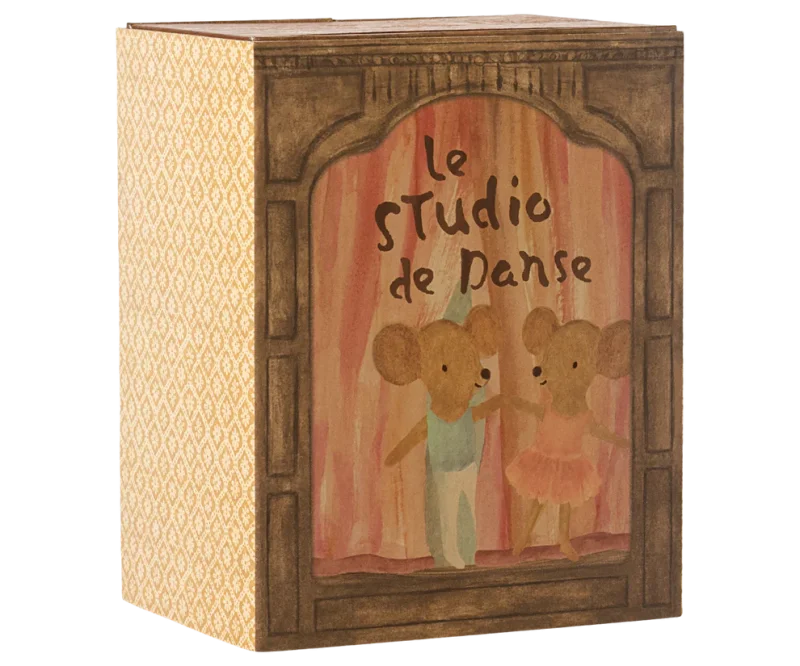 Åbn dørene til denne magiske kasse, og gå på opdagelse i en verden af dans, stjernestøv og historiefortælling. Dette sæt indeholder en æske, som både er et dansestudie og et hyggeligt musehus, samt to mus, som er klædt på til dans.