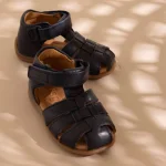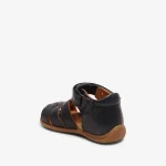 Klassisk begyndersandal med lukket tå, der giver tæerne god beskyttelse. Sandalen er designet med en fast hælkappe, der sikrer den rette støtte og stabilitet omkring anklen. Håndlavet i Portugal af blødt og naturligt læder, og har vegetabilsk garvet skindfoer, som er 100% bionedbrydeligt og 100% fri for krom. Den justerbare Velcro sikrer en naturlig pasform og en let lukning for selv de mindste børn.
