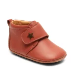 Bisgaard '’baby star’ er en komfortabel og pålidelig hjemmesko, der kan følge barnet gennem alle sæsoner. Hjemmeskoen er designet med en fast hælkappe, som sikrer den korrekte støtte og stabilitet omkring anklen. Skoen er lavet af naturligt og åndbart læder, som sikrer et sundt miljø for små fødder. Den fleksible og skridsikre gummisål sikrer at barnet står godt fast på underlaget. Pasformen kan let tilpasses med den justerbare velcrolukning, som samtidig gør det nemt for barnet selv at tage skoen af og på.