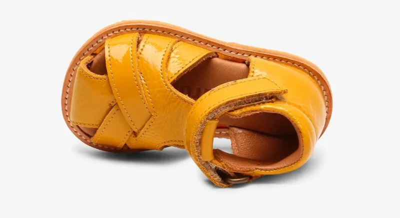 Elegant sandal med lukket tå, der giver tæerne god beskyttelse. Sandalen er håndlavet i Portugal af blødt og naturligt læder. Alt hvad der rører barnets fod indvendigt i skoen, er vegetabilsk garvet læder som er 100% bionedbrydeligt og 100% fri for krom. Den justerbare Velcro sikrer en naturlig pasform og en let lukning for børn i alle aldre.