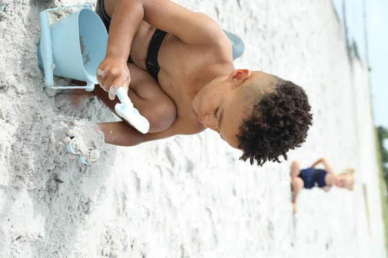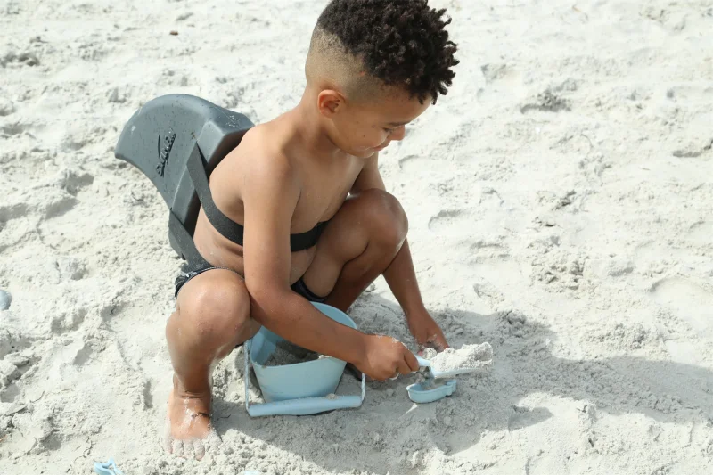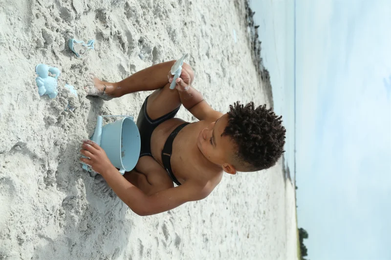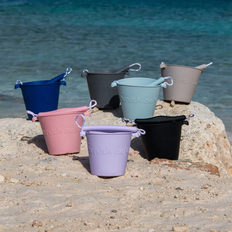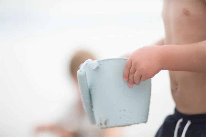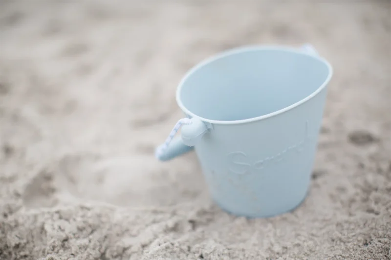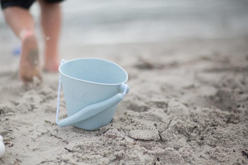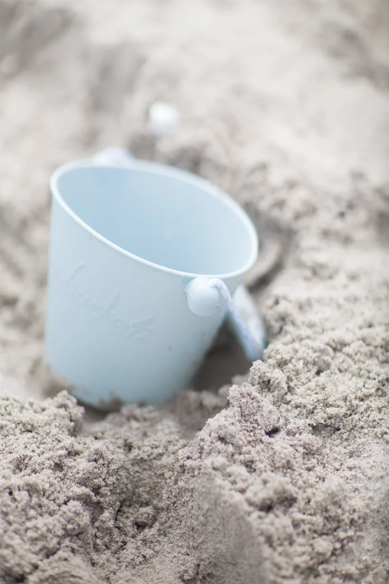 Scrunch-bucket så dagens lys, fordi to engelske mødre blev trætte af billig plastik, der gik i stykker. Spanden kan foldes sammen til det rene ingenting, og vejer kun 210 gram. Den tåler sollys, høj varme og kulde. Her i en skandinavisk inspireret støvet lyseblå.1,5 liter foldbar spand i silikoneCE-mærket / + 1 år