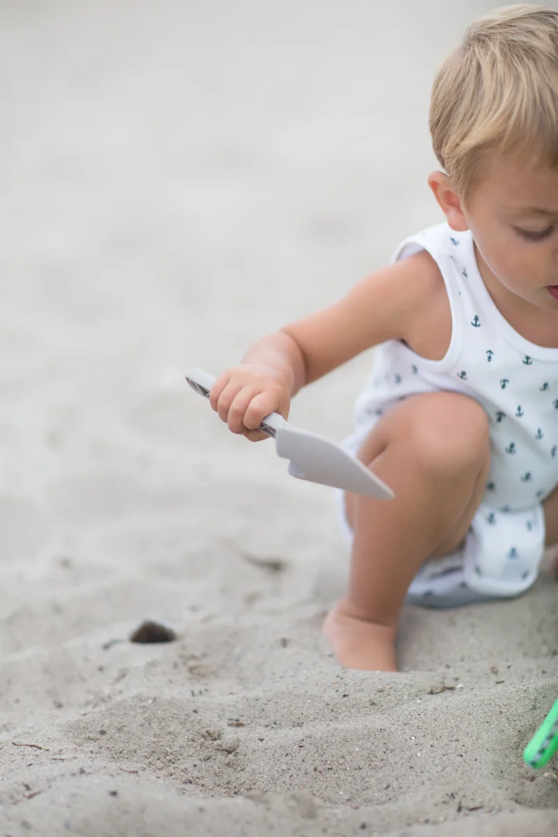 Scrunch-spade er en lille skovl, der ikke fylder ret meget i tasken eller kufferten. Den har et godt greb, som barnet har let ved at holde om. Den passer godt sammen med de andre Scrunch-produkter - såsom spanden og sandformene og alt pakker sammen til det rene ingenting. Her i en grå, der passer til de andre produkter fra Scrunch i samme farve.