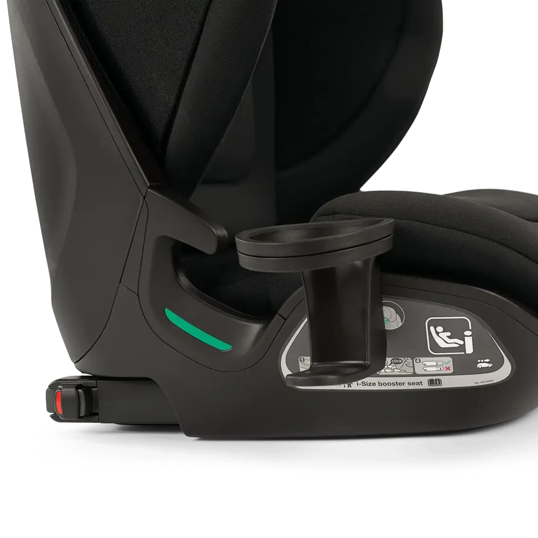 I denne her autostol bliver barnet spændt fast med bilens sele, lige som forældrene selv bruger selen, og det kan gøre det lidt nemmere for barnet at komme over i den "store" stol - de nyder at bære sikkerhedssele ligesom voksne. For at selen sidder rigtigt er der grønne indikationer så du kan se hvor selen skal sidde, og oppe ved nakkestøtten er en rød holder selen skal ind i, og på den måde sikre du at selen sidder korrekt og følger barnet når de vokser - og den følger også med nakkestøtten når den justeres. Hvis spiloppen bliver lidt træt på turen kan ryggen lænes tilbage, så hovedet ikke falder forover og gør det mere behageligt lige at tage en lur i bilen. Der medfølger en kopholder og du vælger selv hvilken side af stolen den skal sidde, og den passer perfekt til de fleste drikkedunke.