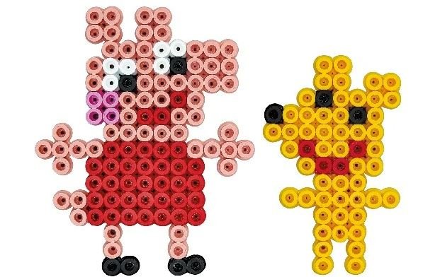 HAMA Maxi Gurli Gris bøtte med perler og perleplade. Alle børn kender Gurli Gris og Gustav fra Ramasjang. Nu kan man selv få lov at lave de små figurer med perler til ophæng. Figurerne er perfekt som dekoration og vil helt sikkert skabe glæde på alle børneværelser. Bøtten indeholder ca. 900stk. maxi-perler, 1 stor firkantet perleplade, snor, mønsterark i farver, vejledning og strygepapir. HAMA-perler er fremstillet af polyethylen (PE). HAMA-perleplader er fremstillet af polystyren. Produktets HAMA-nr.: 8750.