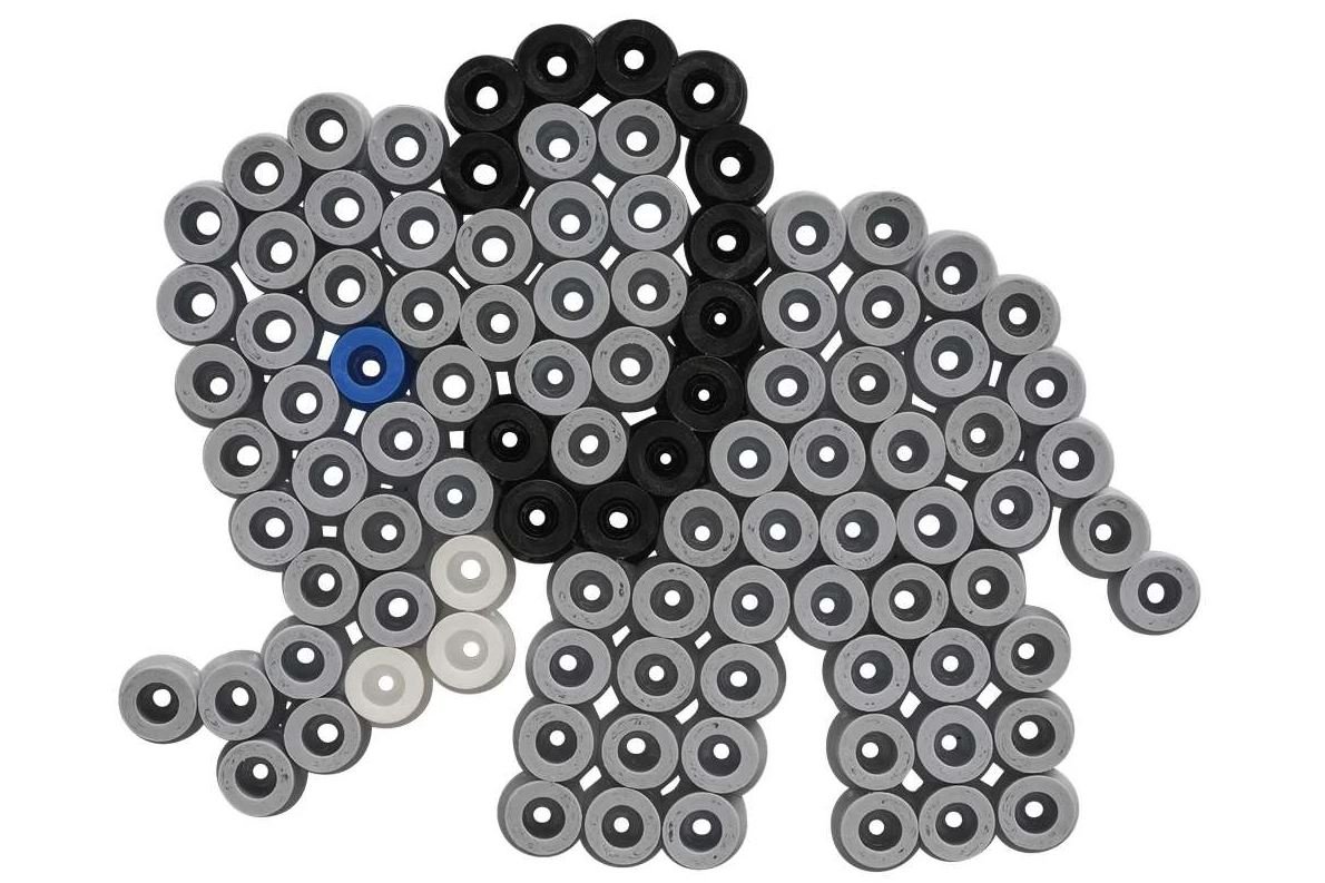 Bøtten indeholder ca. 600 maxi perler, 1 gennemsigtig stiftplade - lille elefant nr. 8230, motiv- og malehæfte, vejledning og strygepapir.