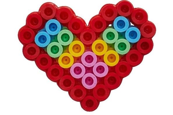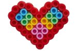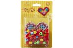 Pakken indeholder ca. 100 maxi perler ass. farver, 1 gennemsigtigt lille hjerte stiftplade nr. 8231 og strygepapir.