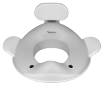 Børnetoiletsædet kan bruges universelt på standard toiletsæder og har en ekstra stænkbeskyttelse og en skridsikker bund.