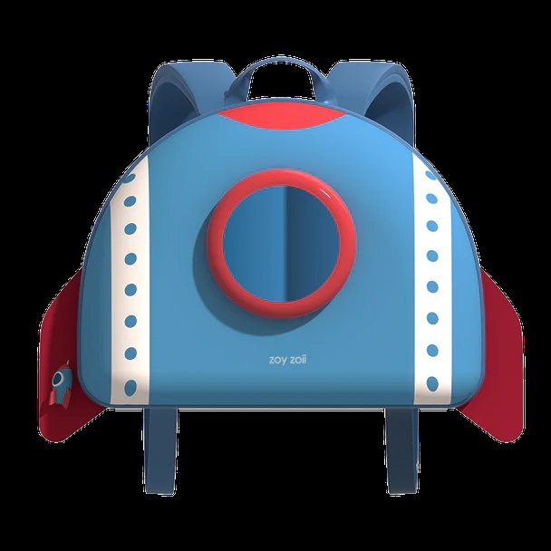 Denne søde rygsæk fra Zoy Zoii er designet som en flot 3D-rumraket i blå, rød og hvid farve. Med vinger og vindue tilføjer den et ekstra touch til dit outfit.