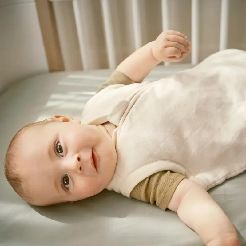 Lynlåsen har to åbninger, som sikrer optimal luftcirkulation og nem adgang, og der er god plads til barnets bevægelser under søvnen. Soveposen er fremstillet af 100 % økologisk bomuld i interlock-kvalitet med fyld af polyesterfibre og små glaskugler. Glaskuglerne er indlejret i et Secure Cell System for maksimal sikkerhed. Tyngden fordeler sig jævnt henover forsiden af kroppen. Vælg mellem de smukke naturfarver Nature og Stone.