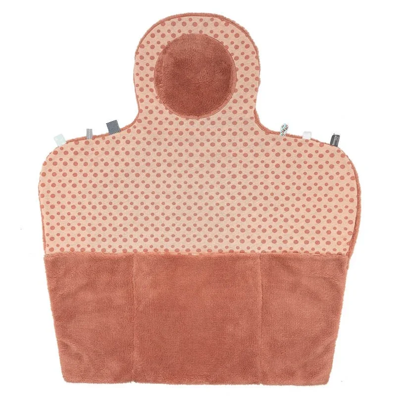 Snoozebaby skifteunderlag er dejlig blødt med forskellige farverige labels rundt i kanten som er lige til at lege med. Der er en lille ekstra pude til barnets hoved så barnet altid ligger behageligt.