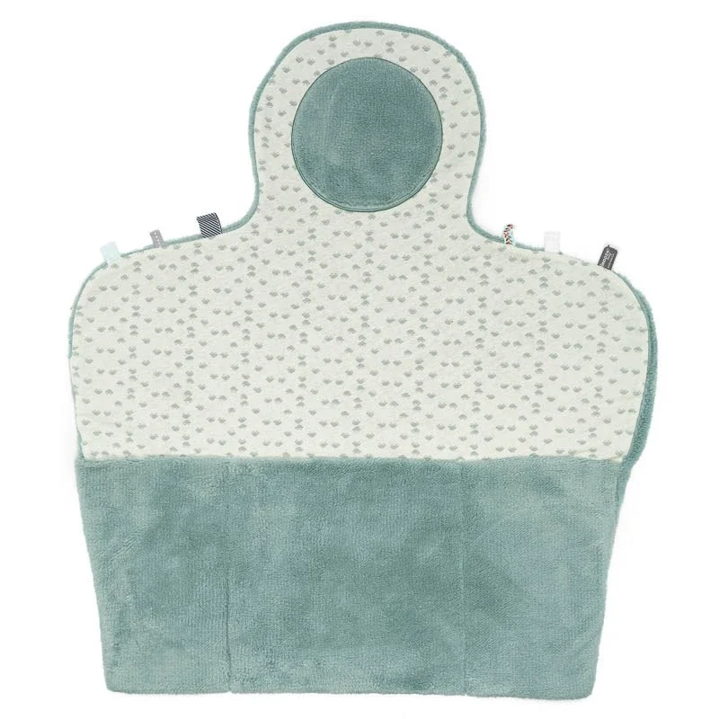 Snoozebaby skifteunderlag er dejlig blødt med forskellige farverige labels rundt i kanten som er lige til at lege med. Der er en lille ekstra pude til barnets hoved så barnet altid ligger behageligt.