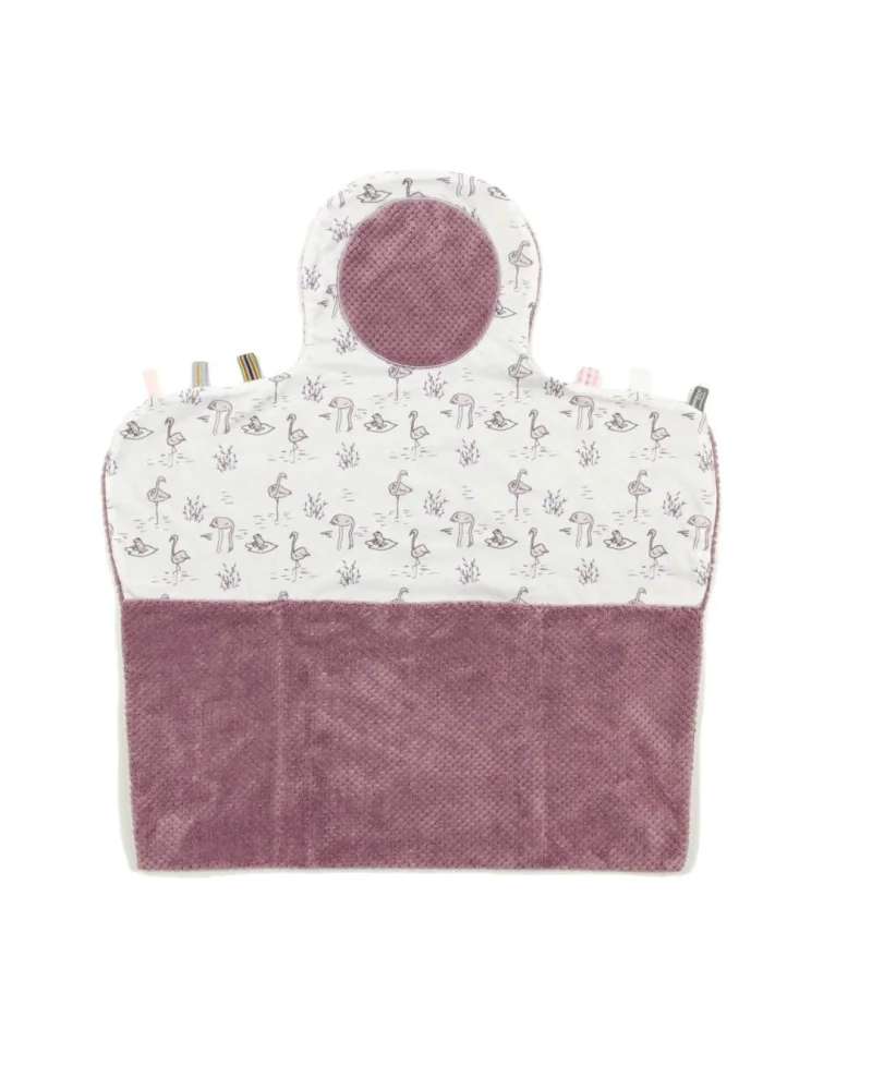 Snoozebaby skifteunderlag er dejlig blødt med forskellige farverige labels rundt i kanten som er lige til at lege med. Der er en lille ekstra pude til barnets hoved så barnet altid ligger behageligt.