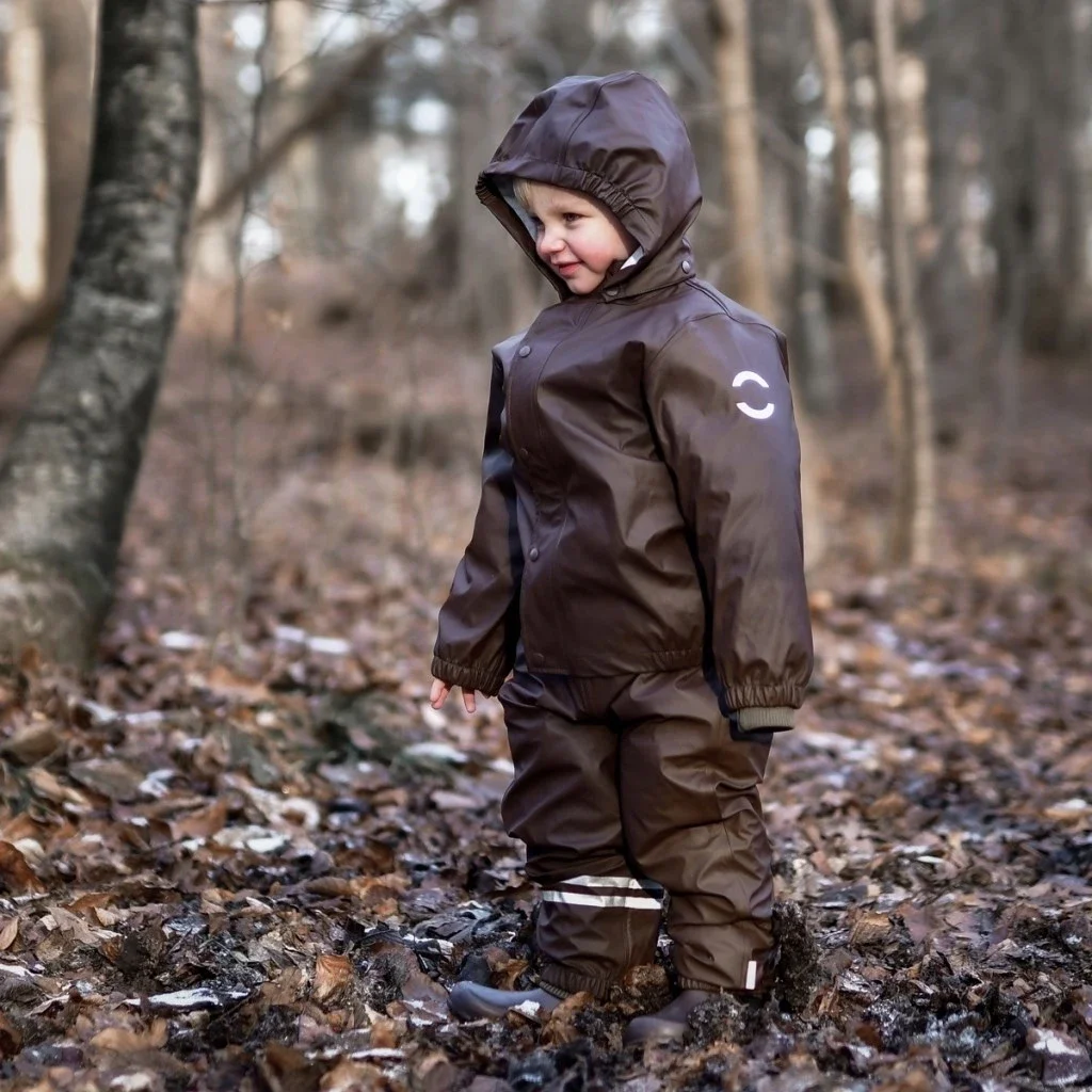Mikkline 2-delt regntøj - Chocolate BrownPraktisk og funktionelt regnsæt fra Mikk-line, der holder dit barn tørt.