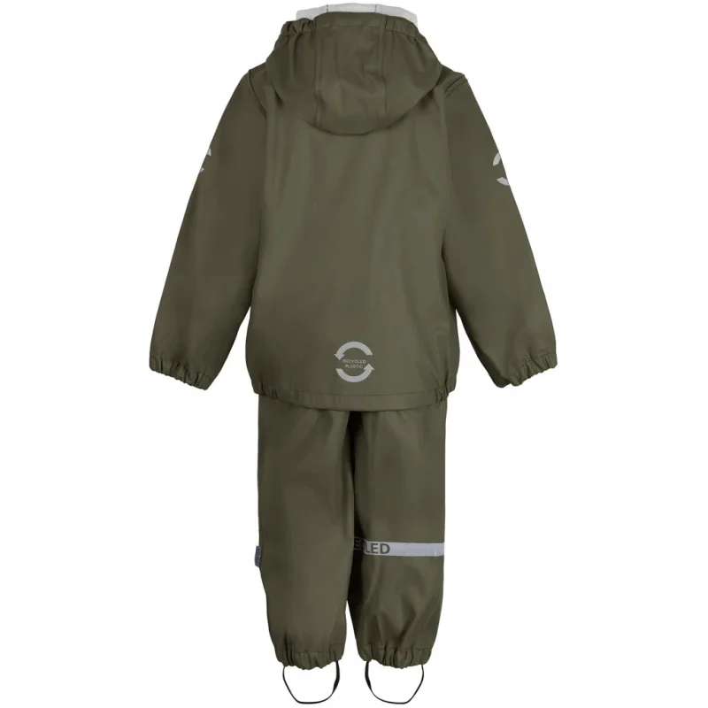 Mikkline 2-delt recycled regntøj m/seler - Dusty Olive