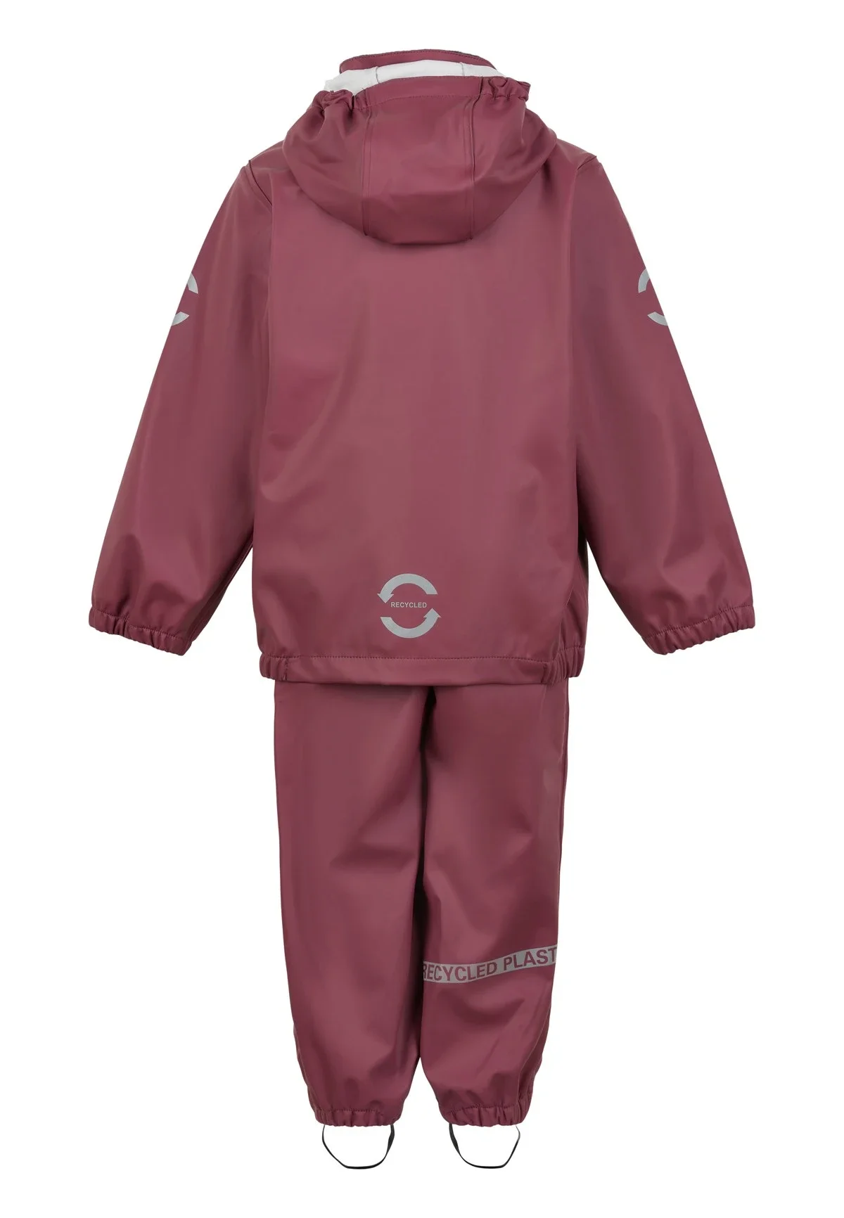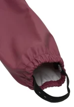 Placer fodstropperne under gummistøvlerne for at holde fødderne tørre. Alt regntøj er udstyret med refleks detaljer så dit barn trygt kan færdes i trafikken.