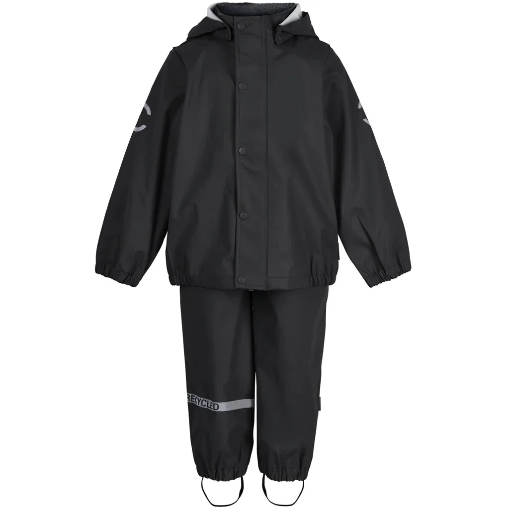 Mikk-line 2-delt recycled regntøjLækkert recycled regntøj fra Mikk-line. Dette regnsæt er vind- og vandtæt med svejsede sømme overalt. Sættet består af en regnjakke og et par regnbukser med justerbar talje. Placer fodstropperne under gummistøvlerne for at holde fødderne tørre. Alt regntøj er udstyret med refleks detaljer, så dit barn trygt kan færdes i trafikken.