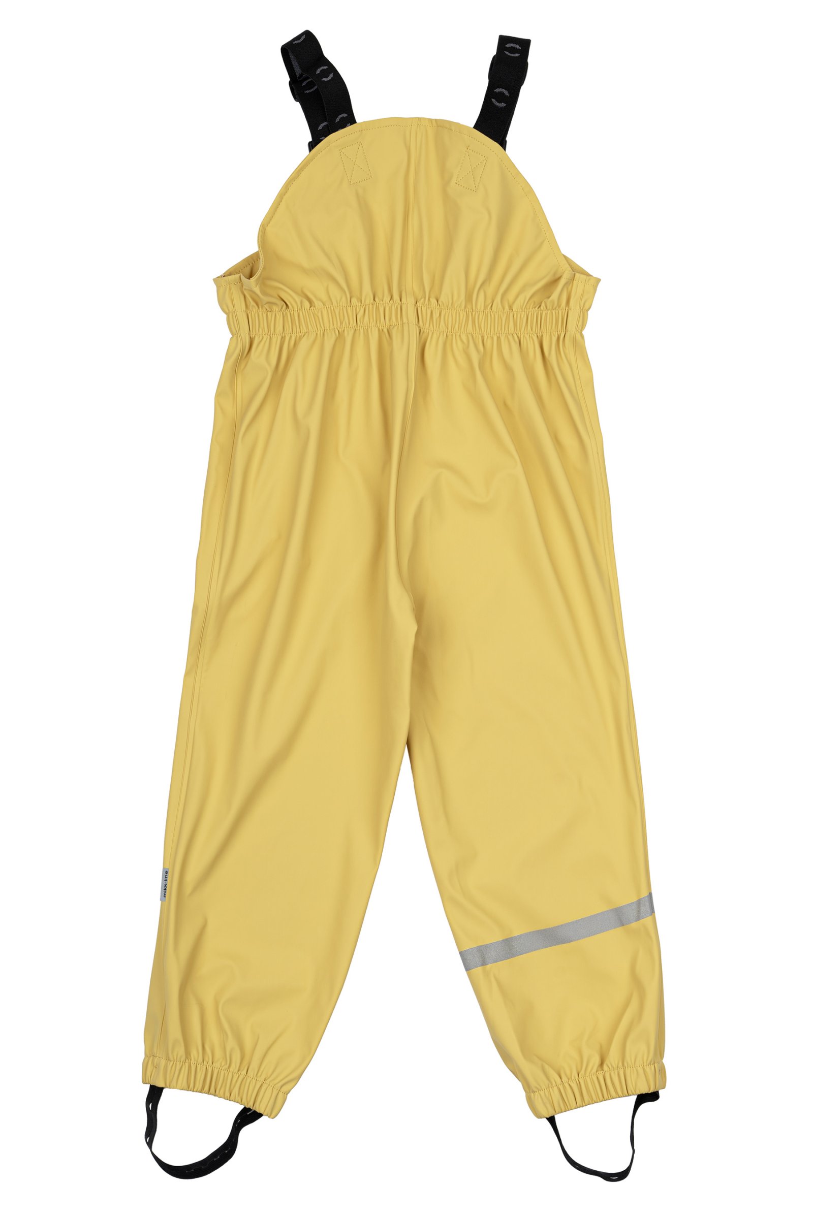 Placer fodstropperne under gummistøvlerne for at holde fødderne tørre. Alt regntøj er udstyret med refleks detaljer så dit barn trygt kan færdes i trafikken.
