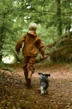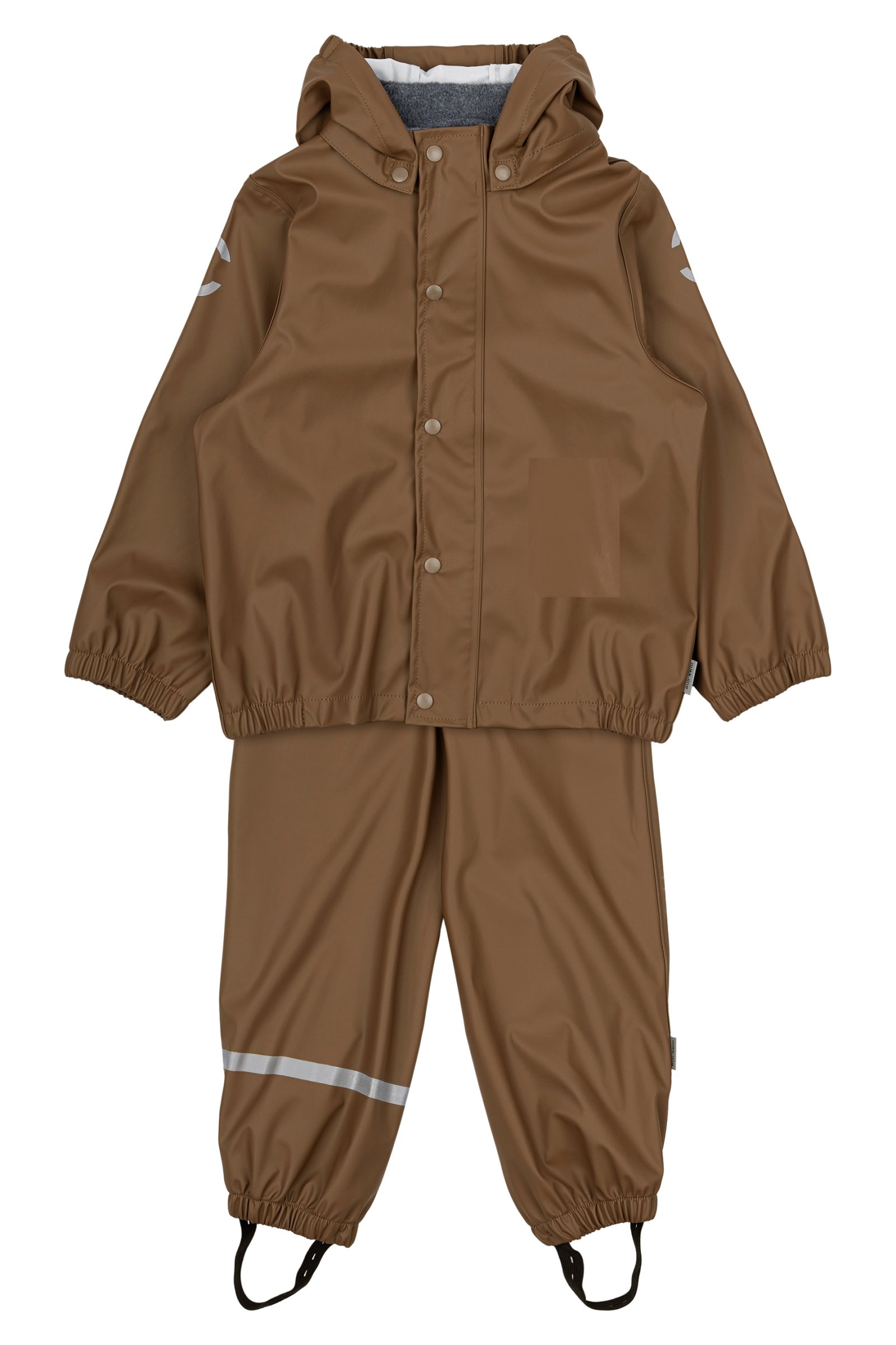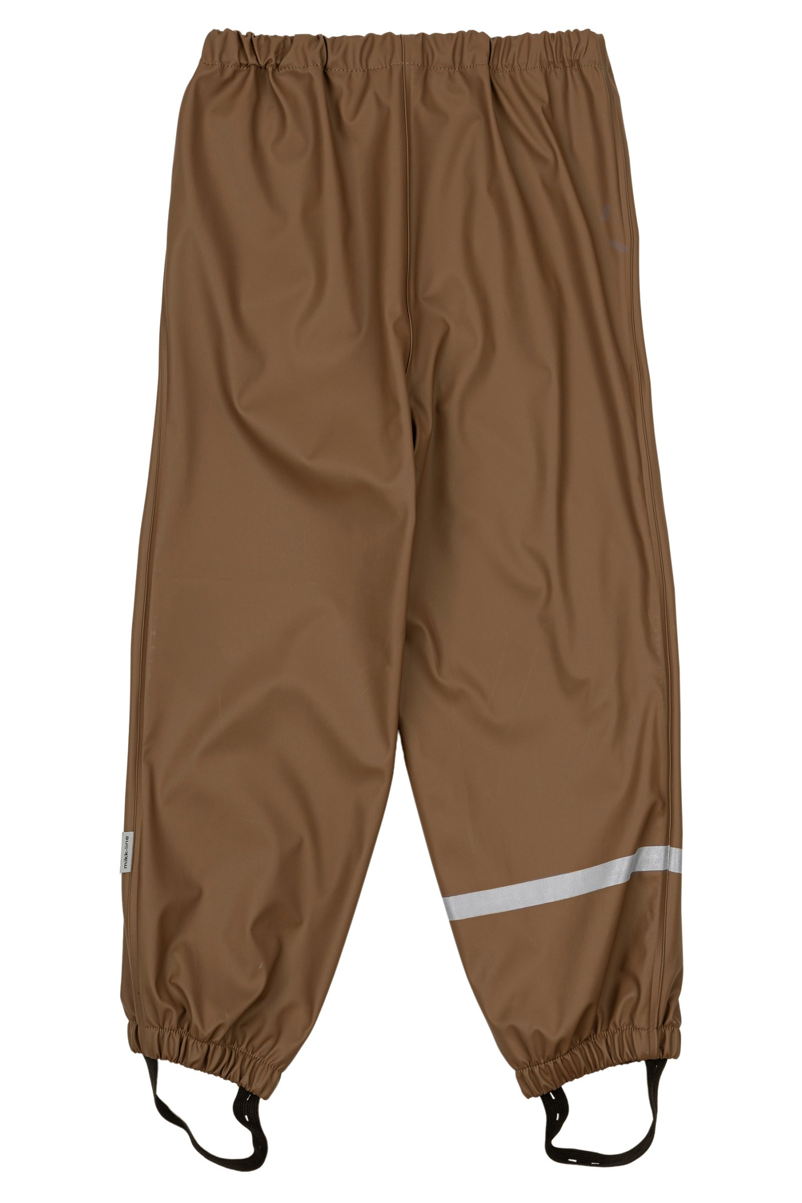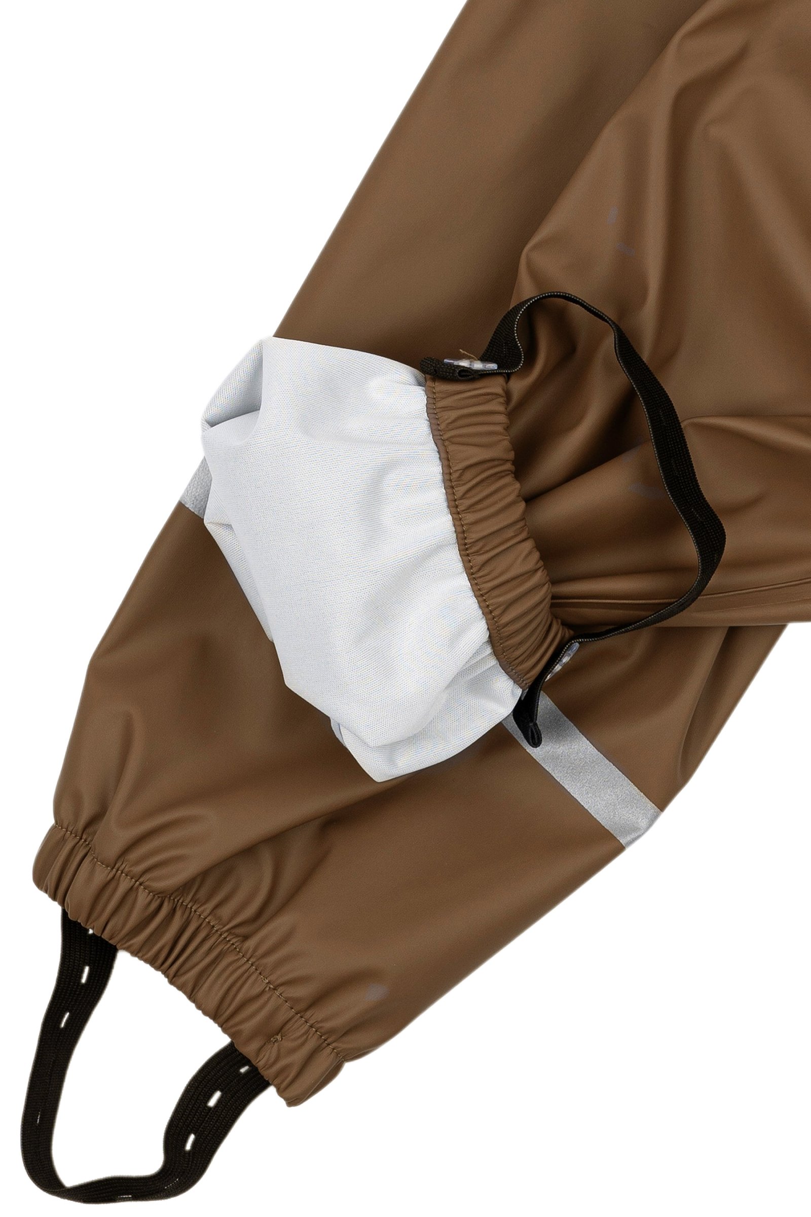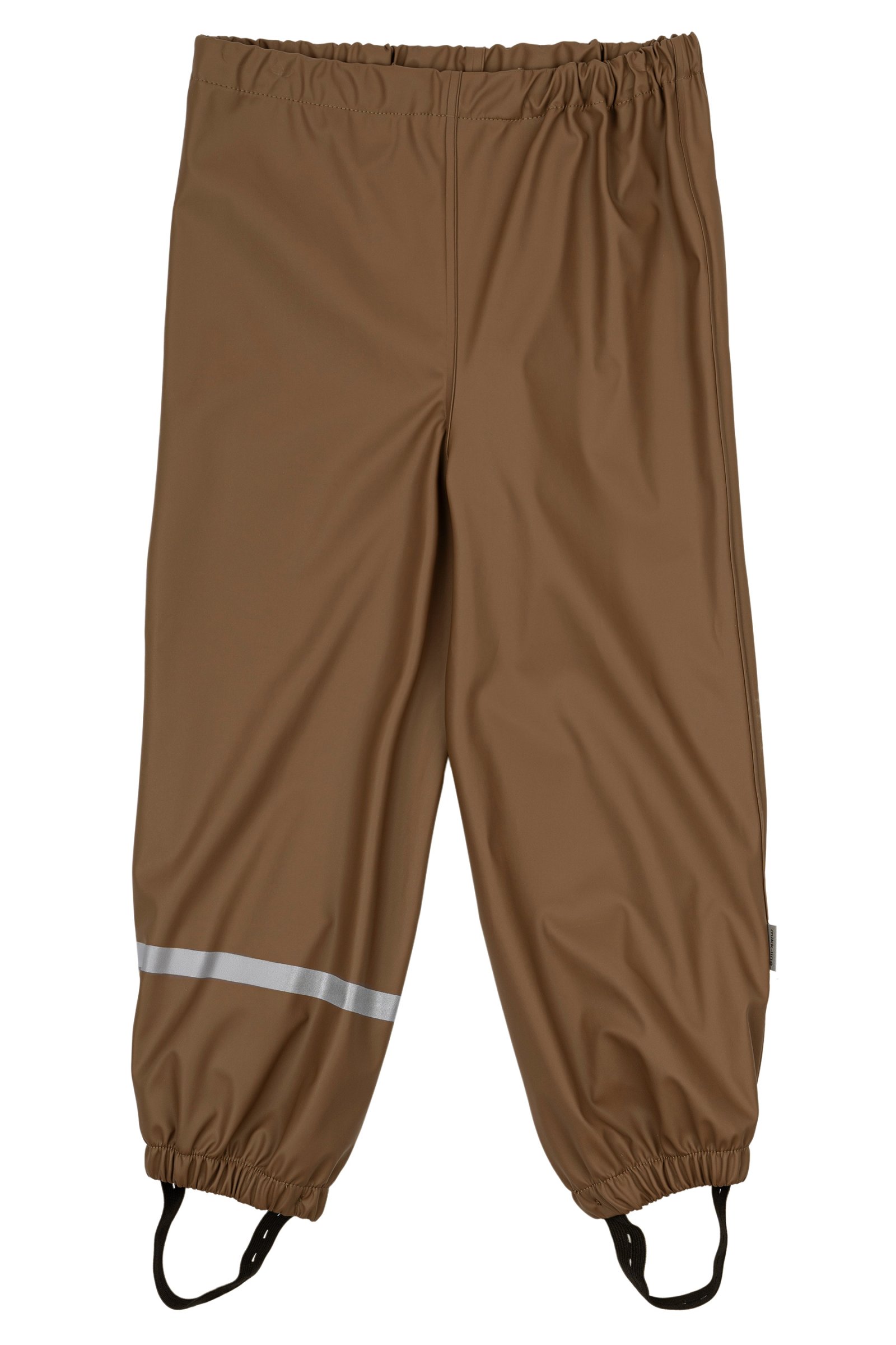 Placer fodstropperne under gummistøvlerne for at holde fødderne tørre. Alt regntøj er udstyret med refleks detaljer så dit barn trygt kan færdes i trafikken.