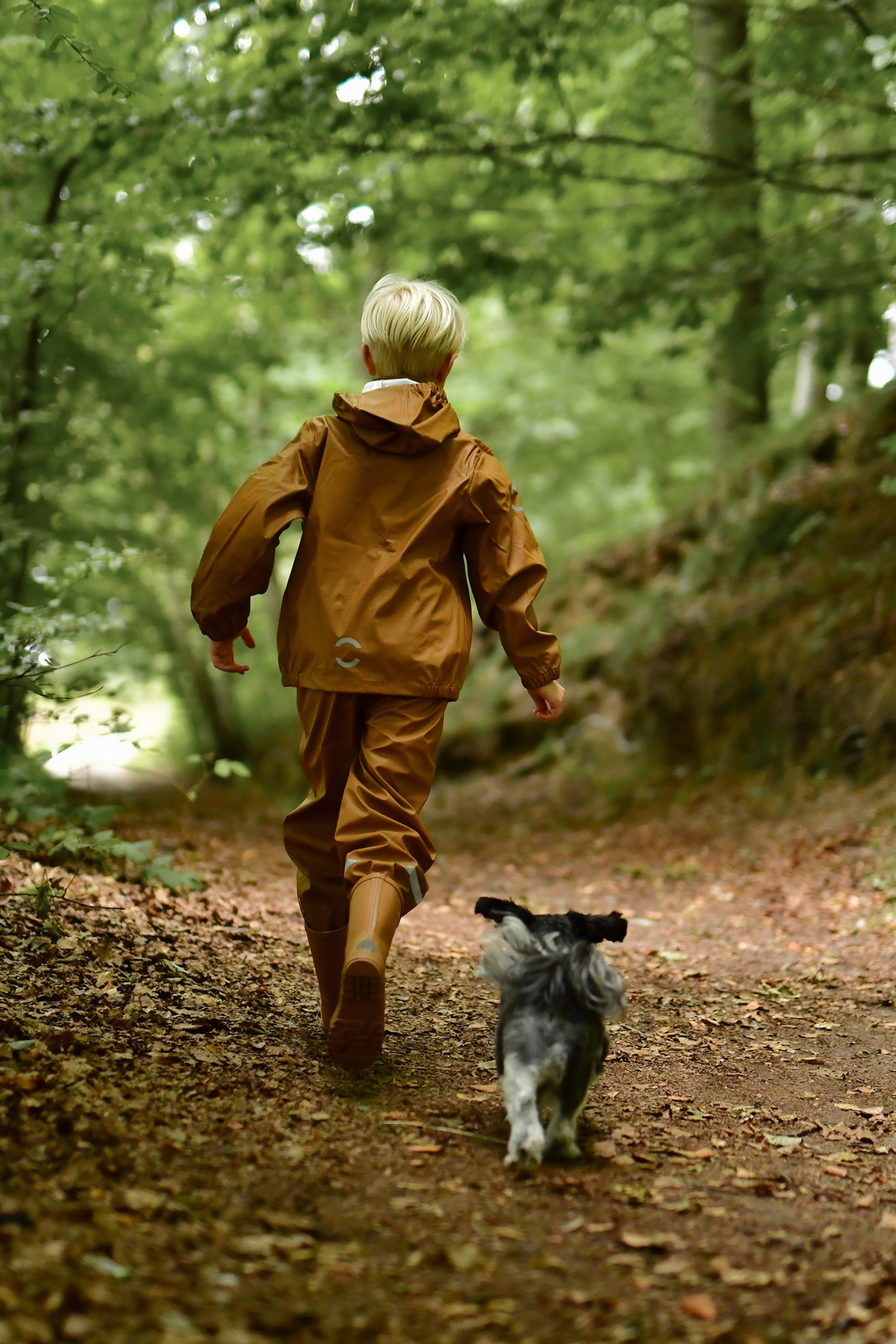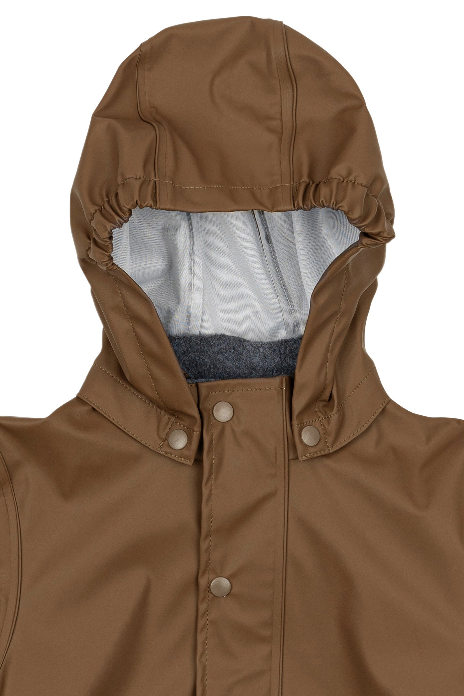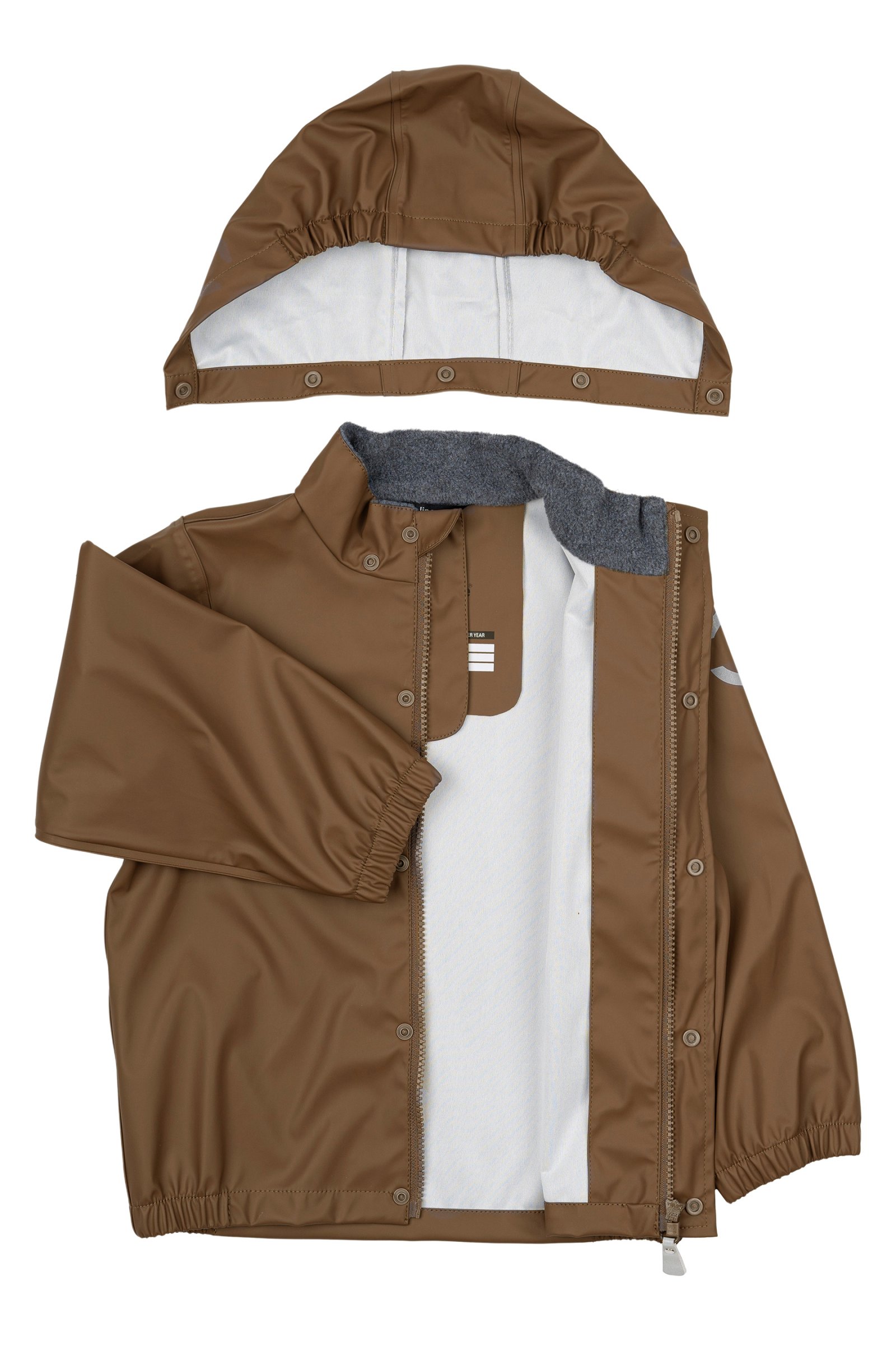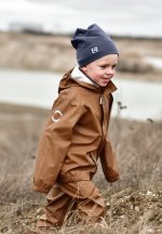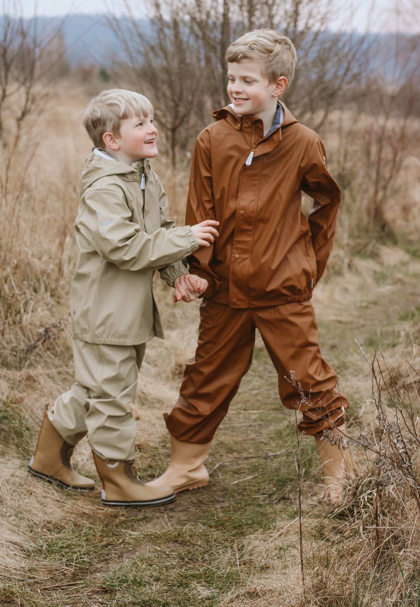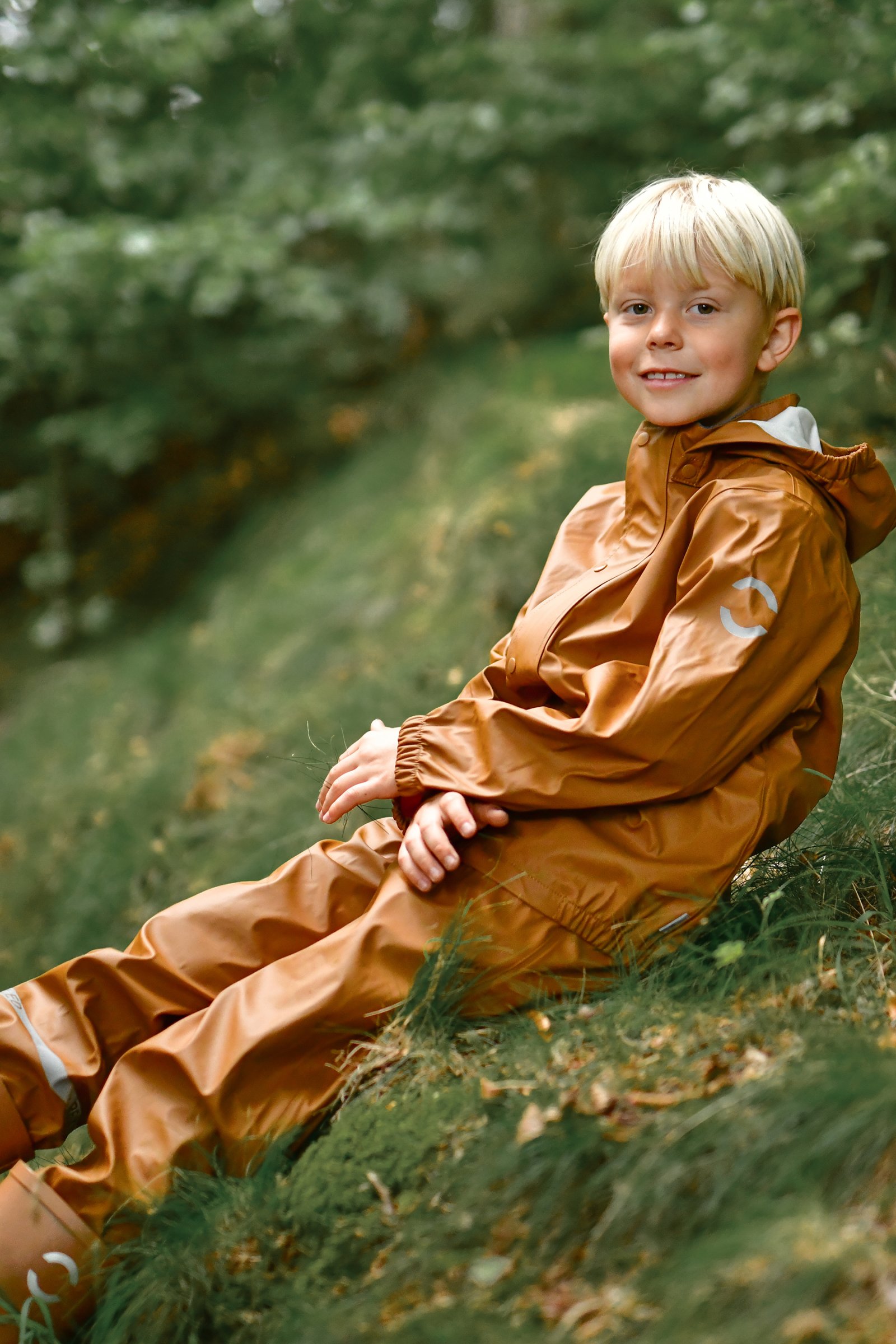 Placer fodstropperne under gummistøvlerne for at holde fødderne tørre. Alt regntøj er udstyret med refleks detaljer så dit barn trygt kan færdes i trafikken.