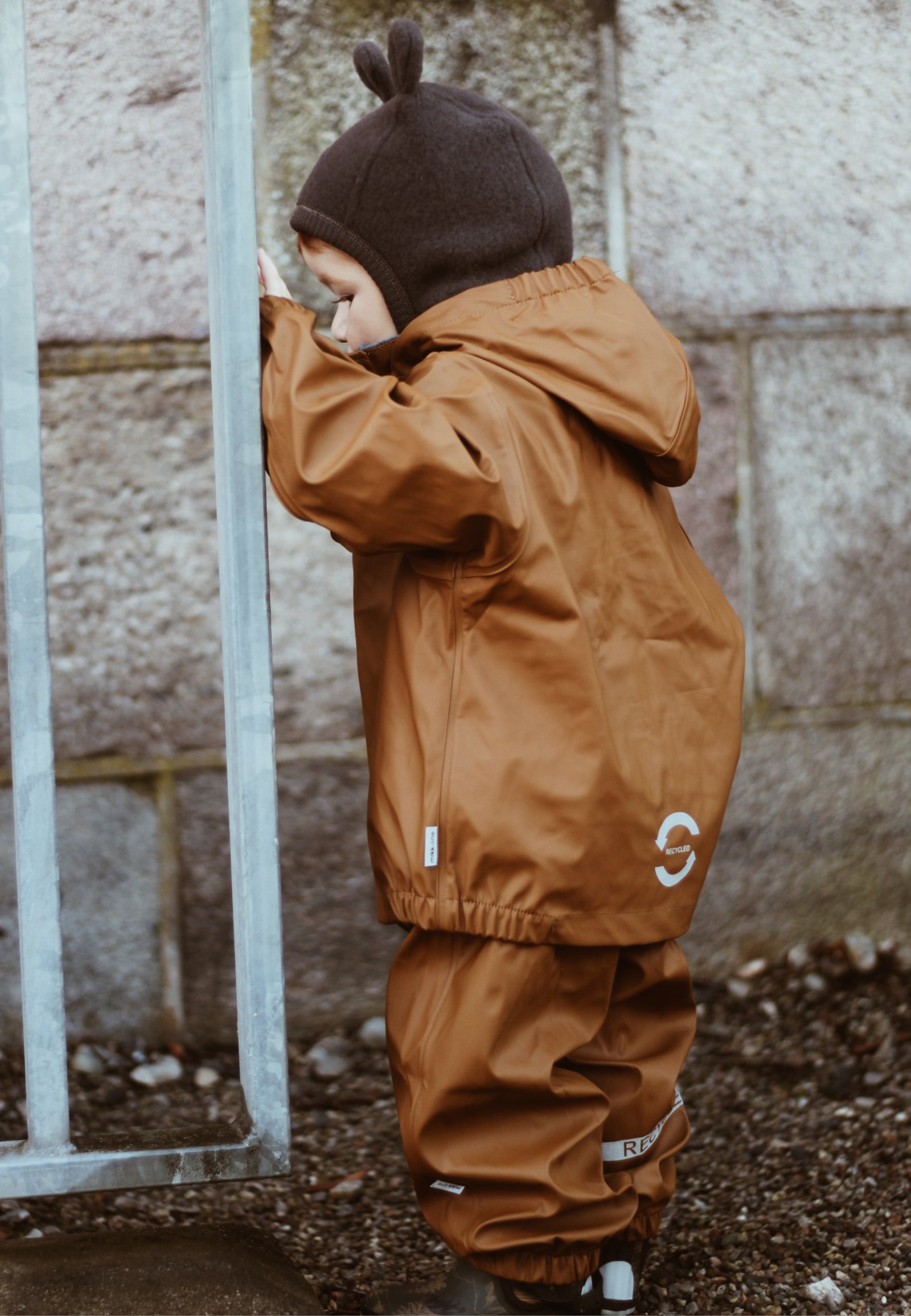 Alt regntøj fra mikk-line er recycled, da vi ønsker at passe på miljøet. Dette regnsæt er vind- og vandtæt med svejsede sømme overalt. Sættet består af en regnjakke og et par regnbukser.