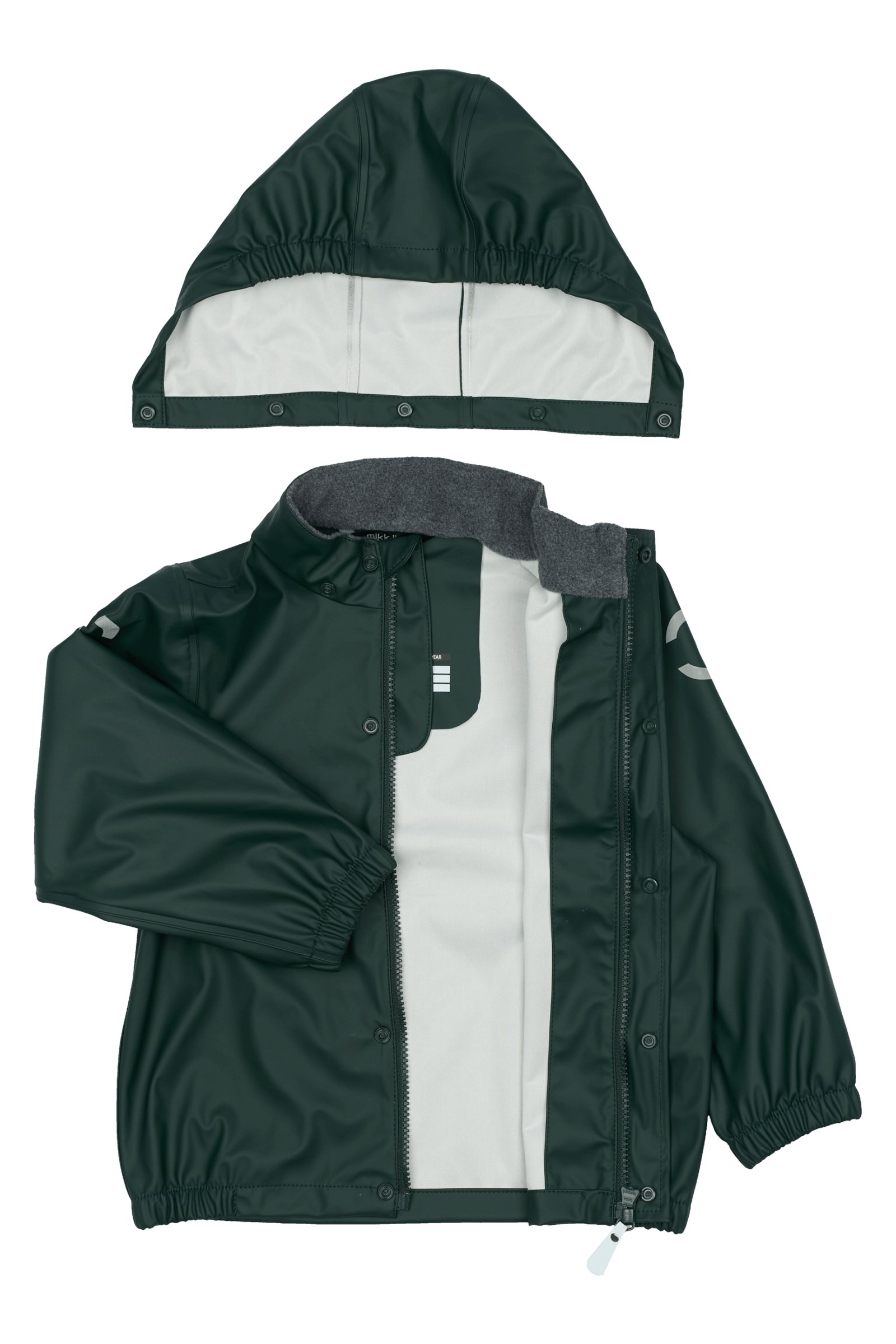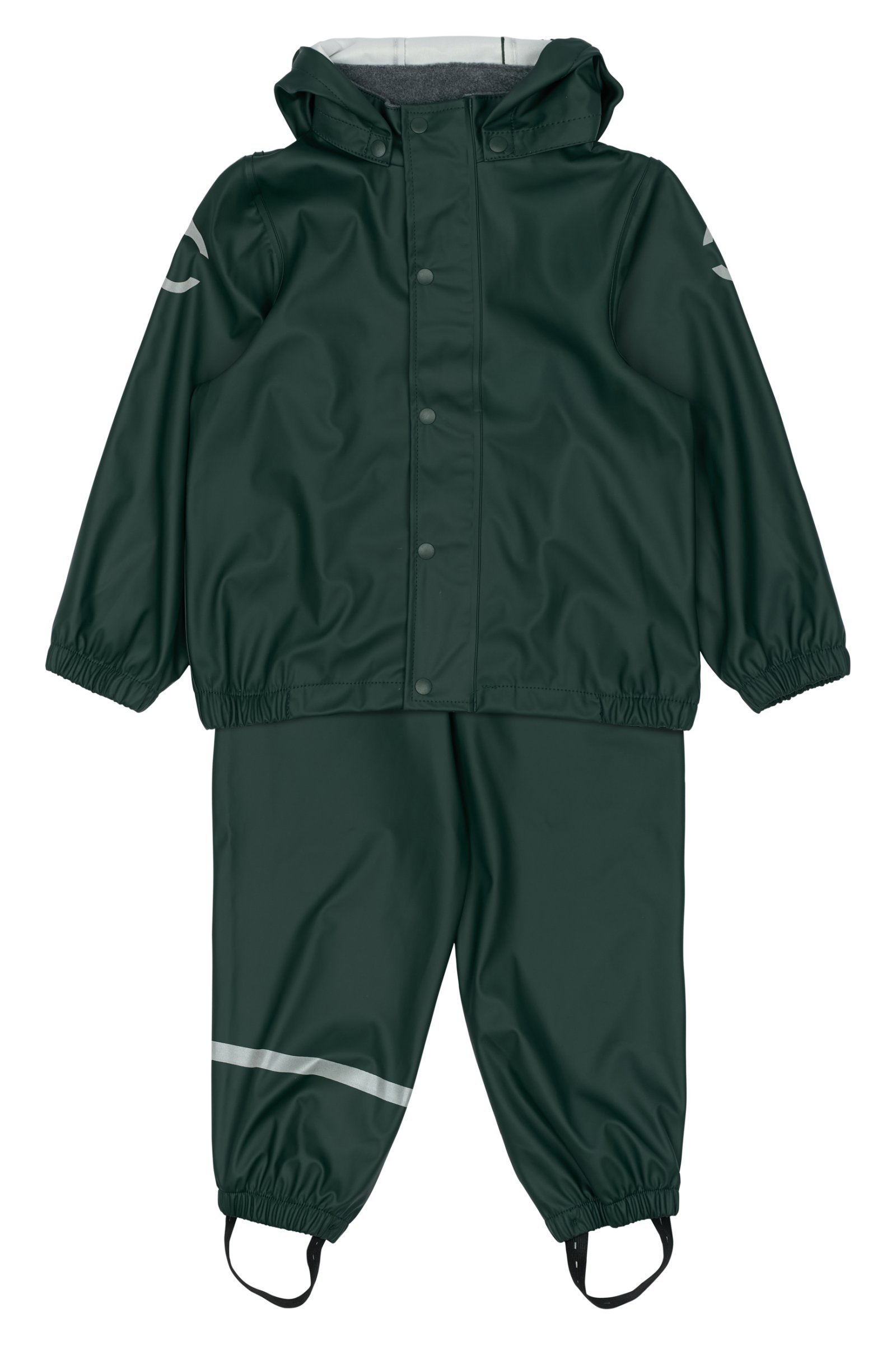 Alt regntøj fra mikk-line er recycled, da vi ønsker at passe på miljøet. Dette regnsæt er vind- og vandtæt med svejsede sømme overalt. Sættet består af en regnjakke og et par regnbukser med seler. Selerne kan justeres og lukkes med klikspænder. Placer fodstropperne under gummistøvlerne for at holde fødderne tørre. Alt regntøj er udstyret med refleks detaljer så dit barn trygt kan færdes i trafikken.