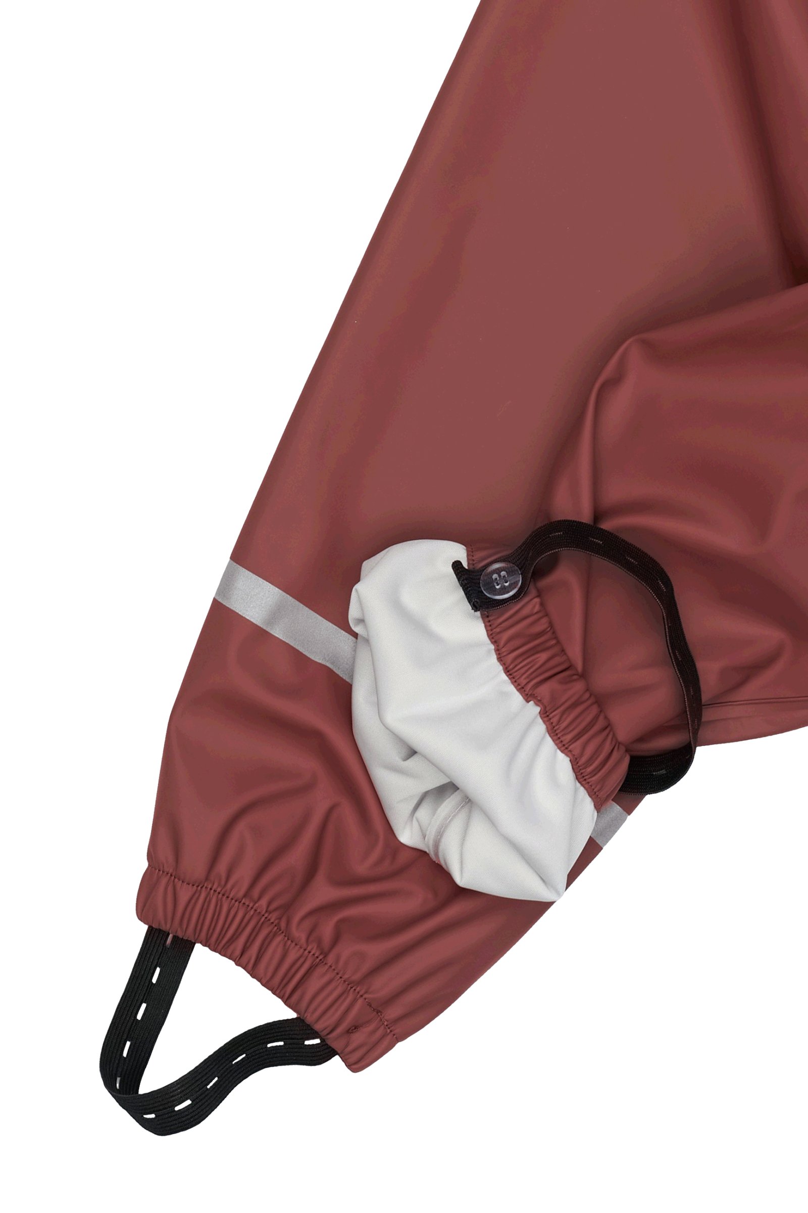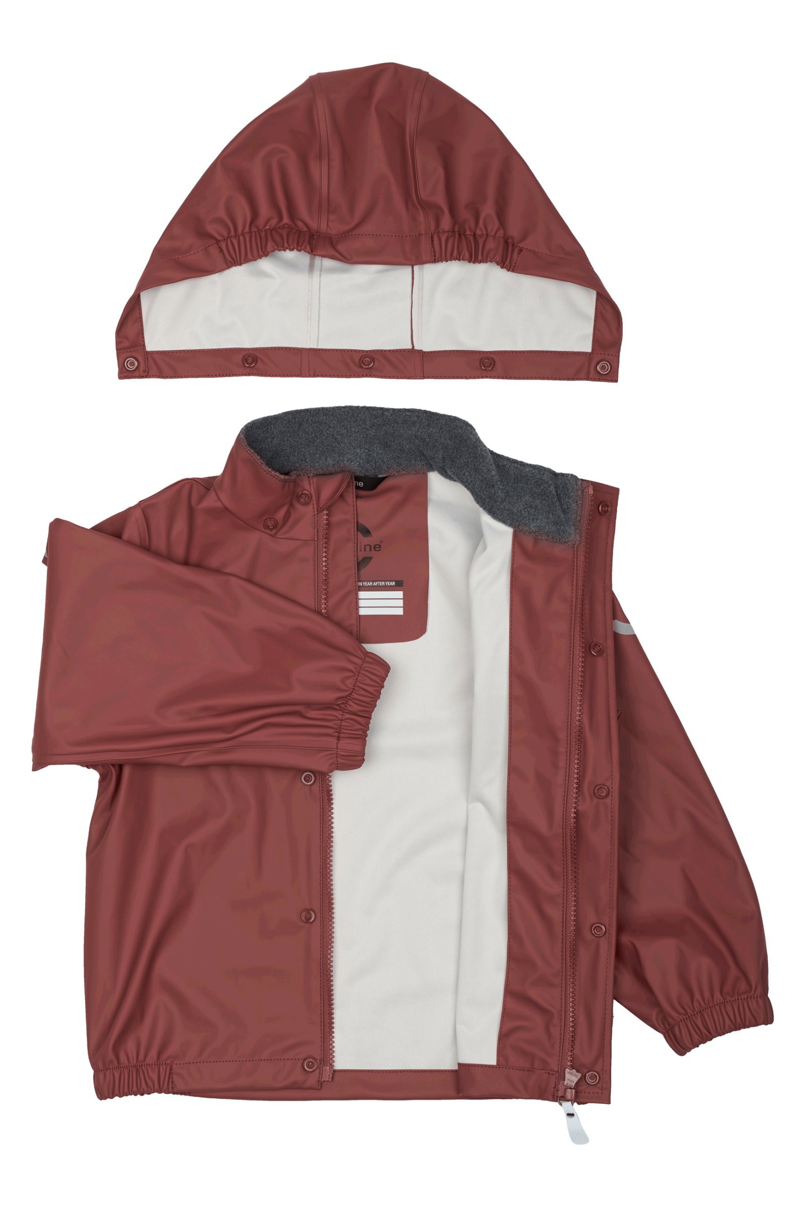 Alt regntøj fra mikk-line er recycled, da vi ønsker at passe på miljøet. Dette regnsæt er vind- og vandtæt med svejsede sømme overalt. Sættet består af en regnjakke og et par regnbukser med seler. Selerne kan justeres og lukkes med klikspænder. Placer fodstropperne under gummistøvlerne for at holde fødderne tørre. Alt regntøj er udstyret med refleks detaljer så dit barn trygt kan færdes i trafikken.