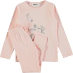Todelt natsæt i lyserød bestående af en langærmet t-shirt med broderede kaniner samt et par natbukser med bindebånd i taljen og bred, elastisk kant forneden.