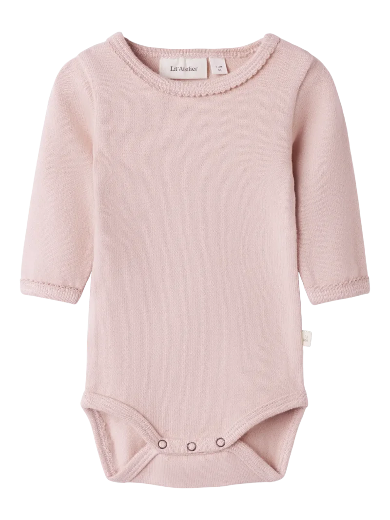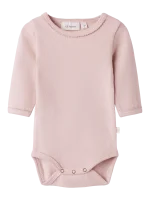 - Produkttype: Bodysuit - Lukning : Trykknap i skulder - Lukning: Trykknapslukning - Hals : Rund hals - Ærmer : Langærmet - Ekstradetaljer : Mærkat - Materiale: Jersey