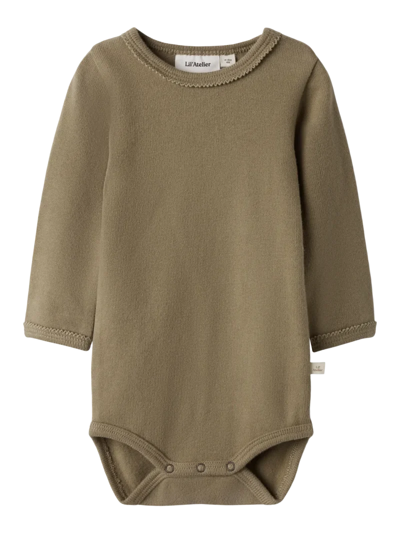 - Produkttype: Bodysuit - Lukning : Trykknap i skulder - Lukning: Trykknapslukning - Hals : Rund hals - Ærmer : Langærmet - Ekstradetaljer : Mærkat - Materiale: Jersey