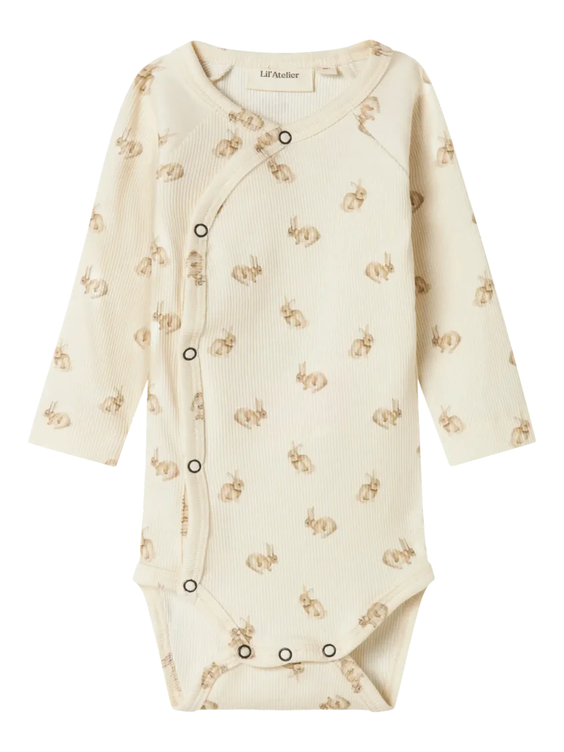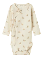 - Produkttype: Bodysuit - Lukning: Trykknapslukning - Print: Print gentaget på tværs af hele produktets overflade - Haludskæring : V-hals - Ærmer : Lange ærmer - Ekstradetaljer : Mærkat