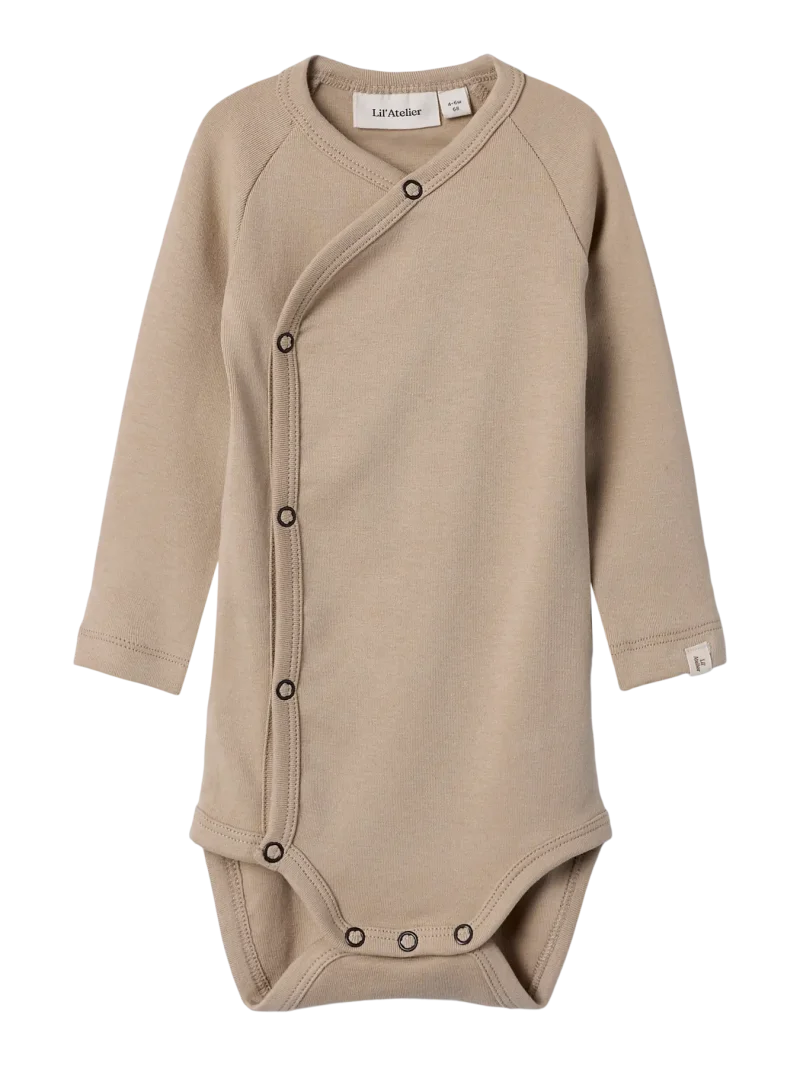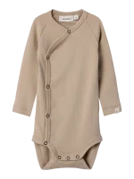 - Produkttype: Bodysuit - Lukning : Slå-om-lukning - Lukning: Trykknapslukning - Haludskæring : V-hals - Ærmer : Langærmet - Ekstradetaljer : Mærkat - Materiale: Jersey