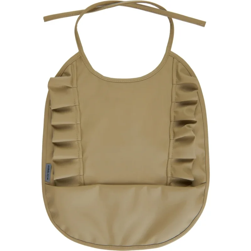 En vandtæt PU-hagesmæk er et nødvendigt tilbehør til babyer og små børn ved spisetid, da den beskytter tøjet fra at blive beskidt. Hagesmækkene har bindebånd, så den altid passer perfekt rundt om halsen, uden at de små selv kan hive den af. Denne hagesmæk er en kort model med opsamlingslomme og flot flæse detalje. Den er lavet med genbrugsmateriale.