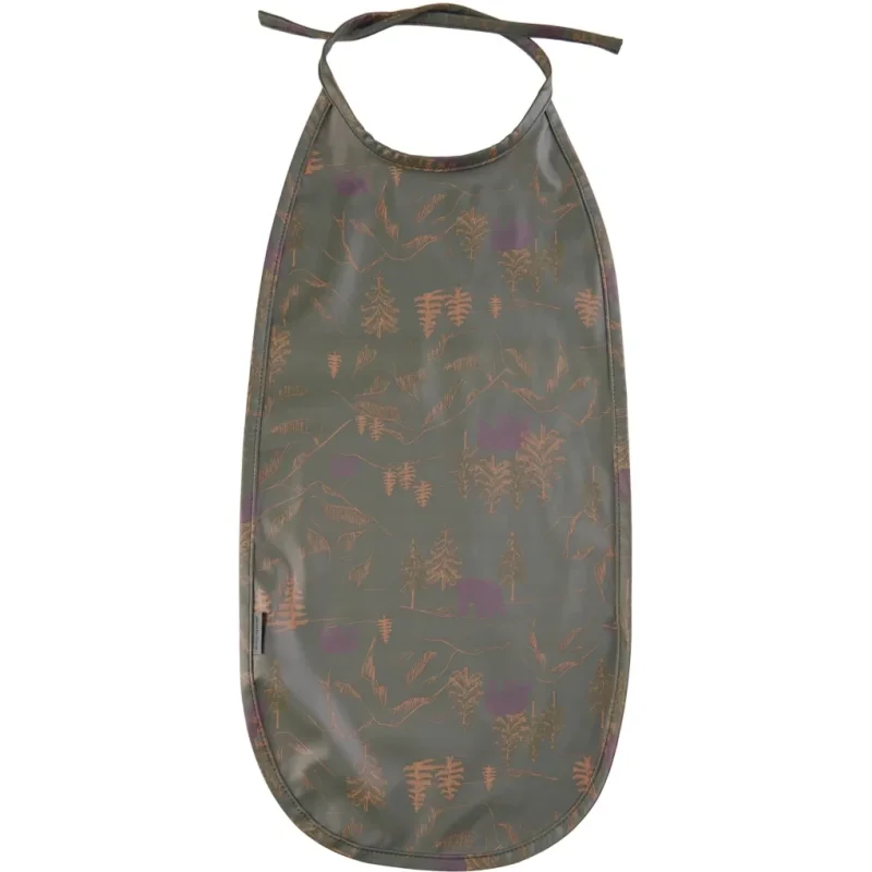 Dette er en lang model med et flot, mønstret AOP (all-over print) og bindebånd, der bindes i nakken. Det gør det let at finde den perfekte pasform til din voksende baby, samtidig med at du sikrer, at den lille ikke selv kan flå hagesmækken af. Den har også en praktisk lomme til at fange det der ikke rammer munden, hvilket minimerer madspild og rengøring.