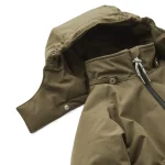 Flyverdragten har aftagelig hætte samt en lynlås på forsiden samt 2 forlommer.