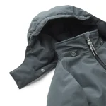 Flyverdragten har aftagelig hætte samt en lynlås på forsiden samt 2 forlommer.