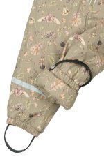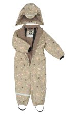 Denne praktiske dragt er lavet af genanvendt polyester med blød polyurethan (PU) coating, der holder barnet varmt og tørt. Den er nem at tage på/af, og beskytter barnet mod vand og vind med minimal begrænsning af barnets bevægelighed. Den har en fluorfri vand- og smudsafvisende overflade, så når legen er ovre, og dragten er dækket af mudder, kan du let rengøre den med en fugtig klud.