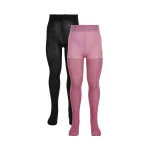 Fine tynde strømpebukser i en pakke af 2 stk., hvor den ene er ensfarvet, og den anden er i en farve med multi lurex glimmer. Elastik i taljen.